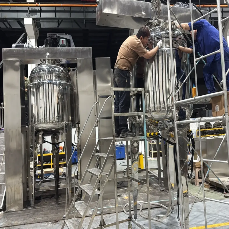 L’unité d’émulsion verticale sous vide 1000L est un équipement professionnel conçu pour la préparation de matériaux à haute viscosité, largement utilisé dans les cosmétiques, les produits pharmaceutiques, les aliments et les industries chimiques fines. Doté d’une structure verticale, il intègre des systèmes efficaces de mélange, d’homogénéisation et de vide pour réaliser une émulsification rapide, un mélange complet et un démoussage. Avec un contrôle de température précis, une opération facile et une construction durable en acier inoxydable, il répond aux besoins de production à grande échelle, assurant l’uniformité du produit, la stabilité et l’efficacité de la production.