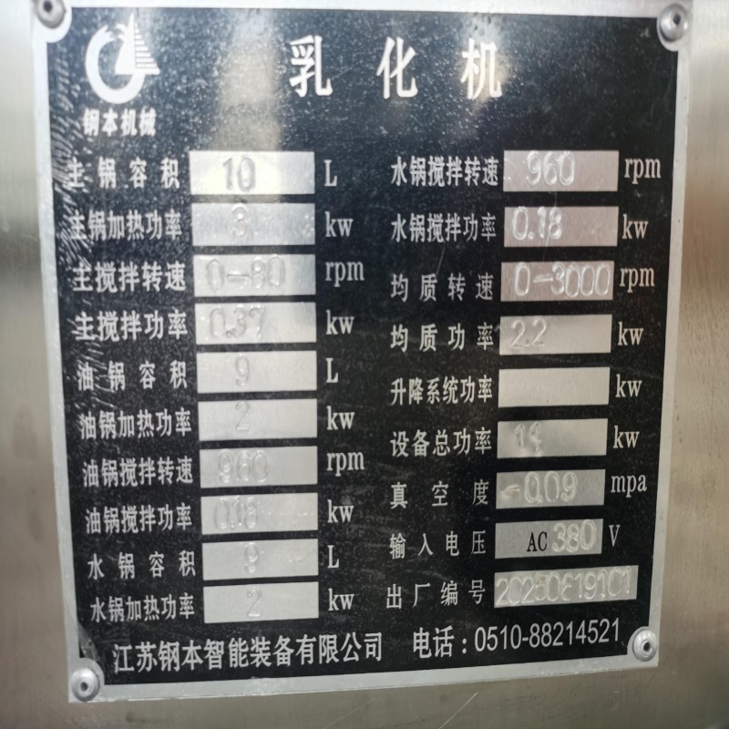 Son cœur est une tête d’émulsion rotor-stator de précision, capable de vitesses variables jusqu’à 3000 tr/min. Ce système génère une force de cisaillement intense et un mélange turbulent, décomposant efficacement les gouttelettes et dispersant les particules pour former des émulsions stables avec une taille de particule uniforme, évitant les problèmes communs comme le crémage ou la séparation de phase. Le ningué de travail de 10 litres et toutes les ningué en contact avec Le produit sont réunies en acier inoxydable 316L, choisi pour sa ningué ningué de corrosion et sa ningué aux ningué de ningué mondiales (FDA, GMP), ce qui Le rend ningué aux applications sensibles.⊑ pour la commodité de l’utilisateur, l’écouter d’un panneau de commande ningué intuitive qui permet à un ningué ningué de fonctionnement et une surveillance de la ningué en temps ningué de processus reproductibles et une ningué constante du produit. Si le couvercle de La citerne est ouvert, ce qui -sp les risques en milieu de travail. Sa conception compacte permet d’ embalagens de l’espace, s’adaptant facilement dans les laboratoires ou les petites zones de production, tandis que la structure modulaire simplifie la maintenance et le remplacement des embalagens.